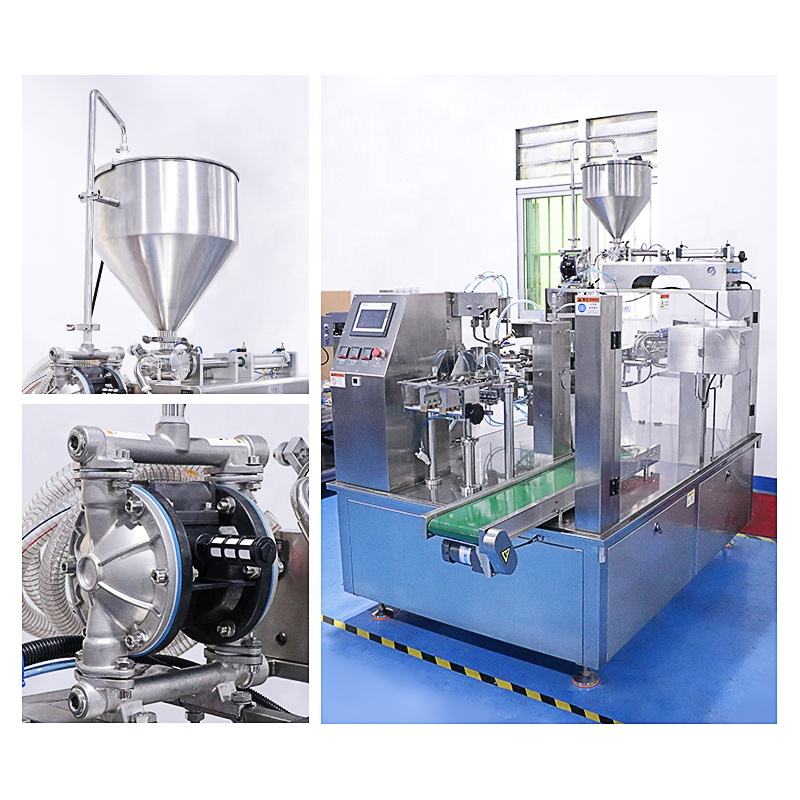 A máquina de embalagem de bolsas líquidas pré-fabricadas é utilizada para embalar uma ampla gama de produtos líquidos, como xampus, condicionadores, loções e soros.Este cenário de aplicação exige uma solução de embalagem que não só preserve a qualidade do produto, mas também valorize seu apelo visual.A máquina embaladora de bolsas para líquidos preenche e sela as bolsas com eficiência, evitando vazamentos e mantendo a viscosidade desejada dos cosméticos líquidos.Ele incorpora recursos como designs de embalagens personalizáveis, permitindo que os fabricantes de cosméticos criem embalagens atraentes e atraentes.