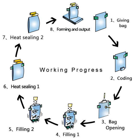 Maior eficiência: Máquinas pré-fabricadas para enchimento e selagem de sacos melhoram significativamente a eficiência ao automatizar o processo de embalagem.Essas máquinas podem encher e selar centenas de sacos por minuto, reduzindo os custos de mão de obra e aumentando a produção.